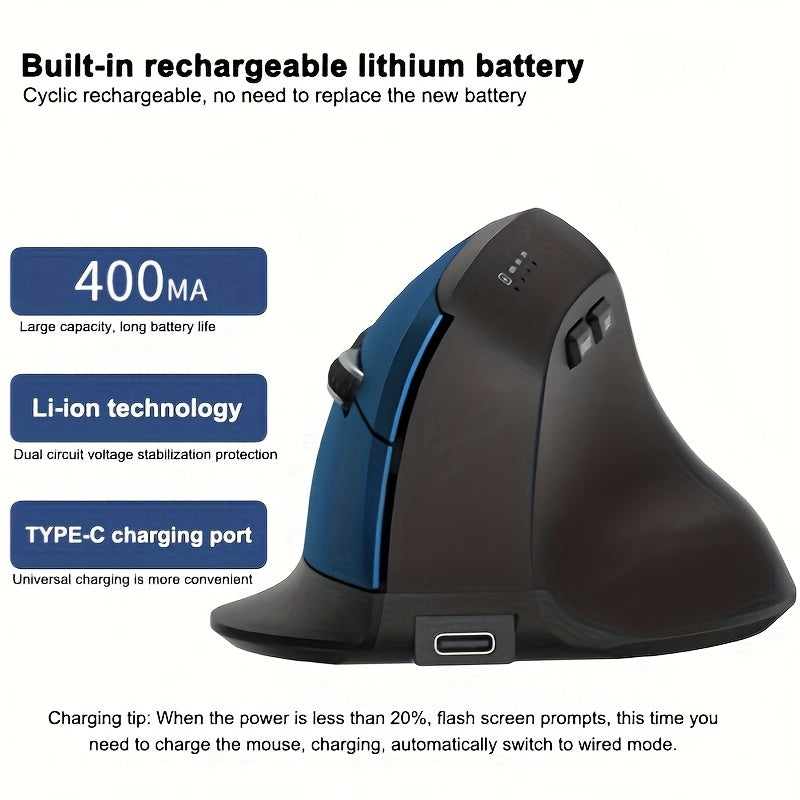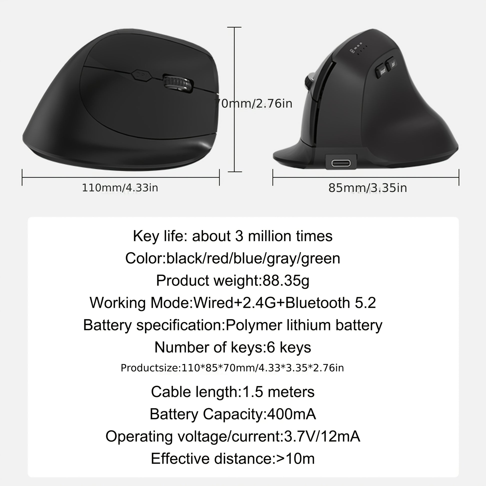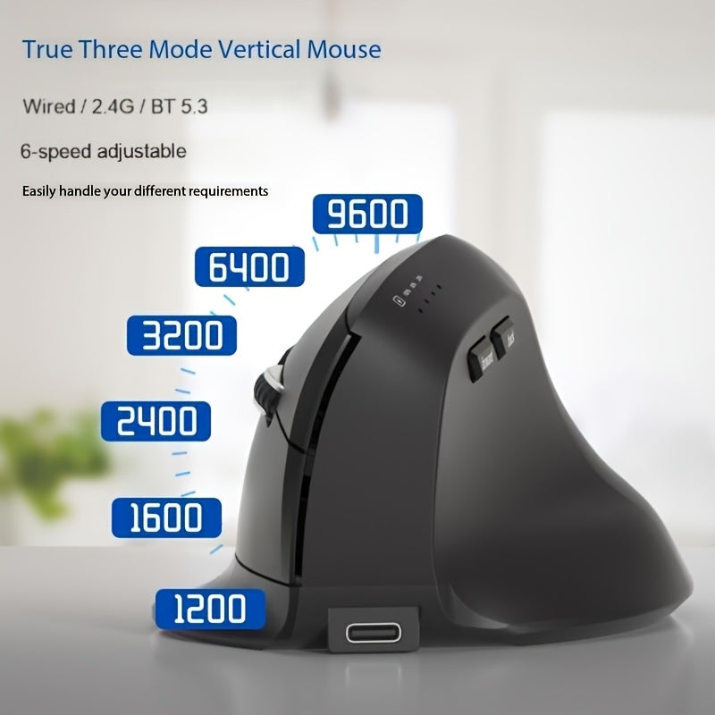 WOWSSYO Right-Handed Ergonomic Gaming Mouse - Wired + Wireless + BT Tri-Mode, 6-Speed Adjustable Optical, USB-C Rechargeable, Ergonomic Design for Laptop & Desktop Computers, Black/Red/Blue/Teal, Ergonomic Mouse, Computer Acc
