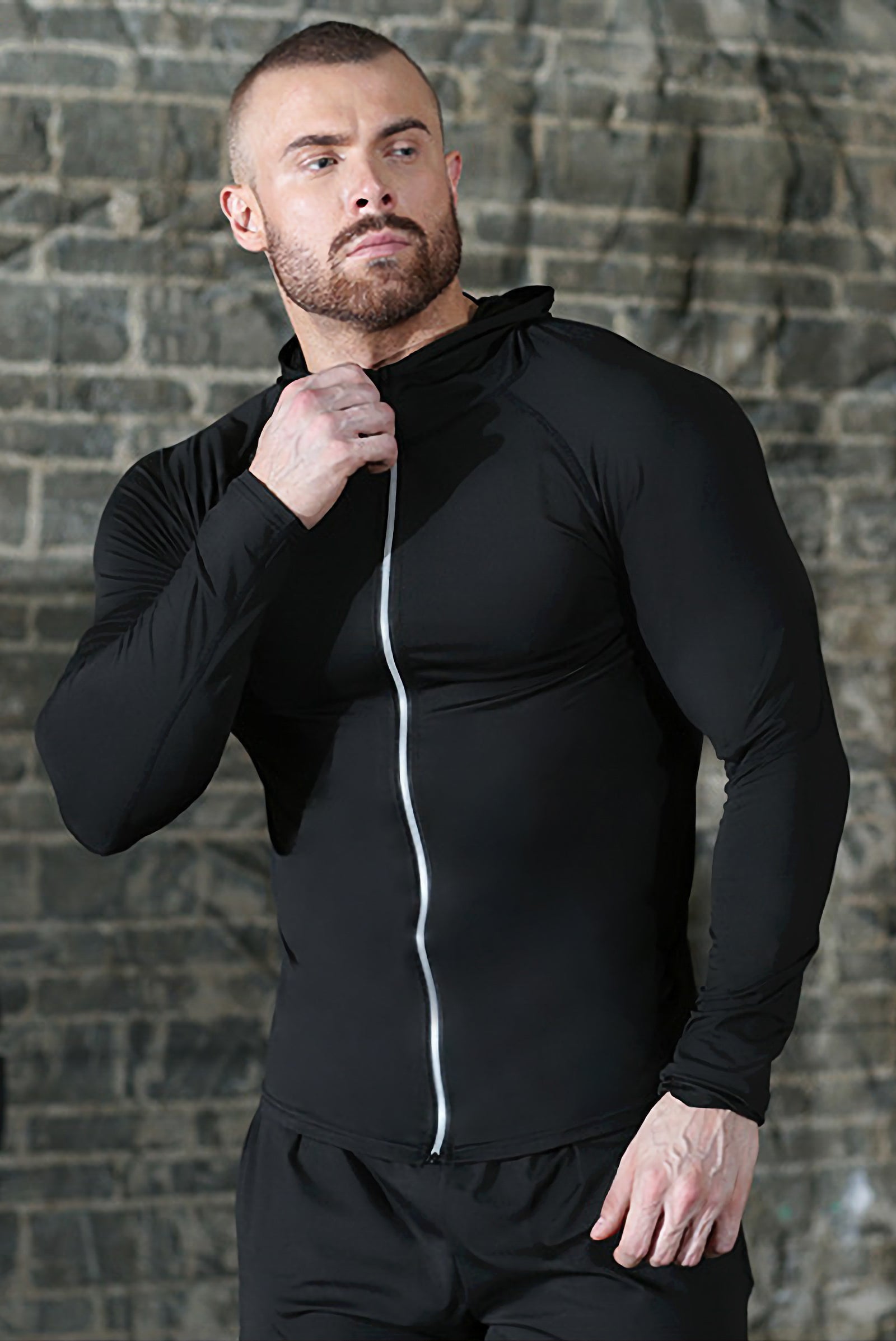 Xinso Prince 5pcs Men's Zip Up Hooded Jacket & Compression T-shirt & Long Sleeve Workout Top & Shorts & Leggings For Fitness