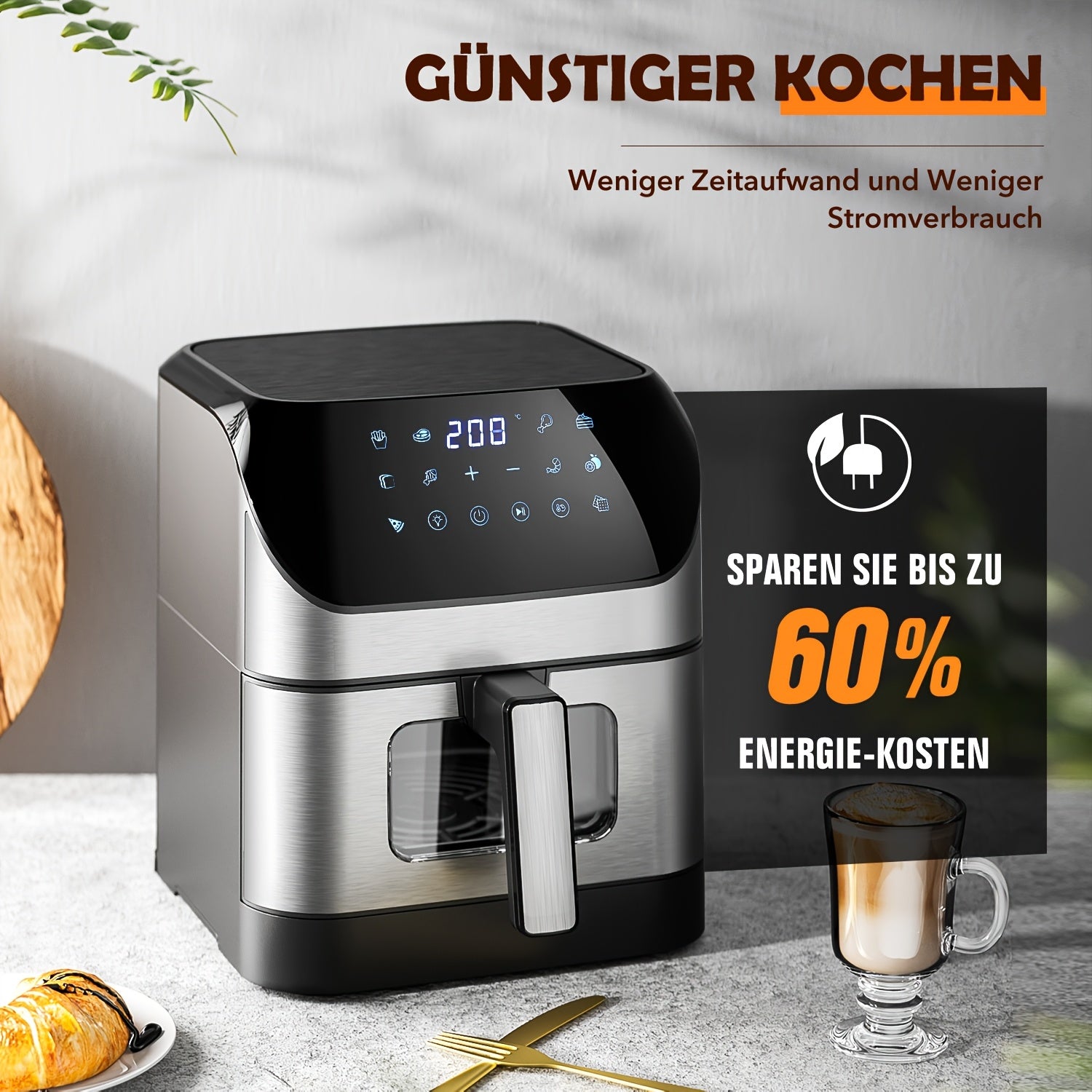XXL 8L Air Fryer With Viewing Window, Oil-Free Fryer, Adjustable Temperature 80°C-200°C, 10 Presets In One Touch, Digital Control, Non-Stick Basket, Air Fryer Ninja Style