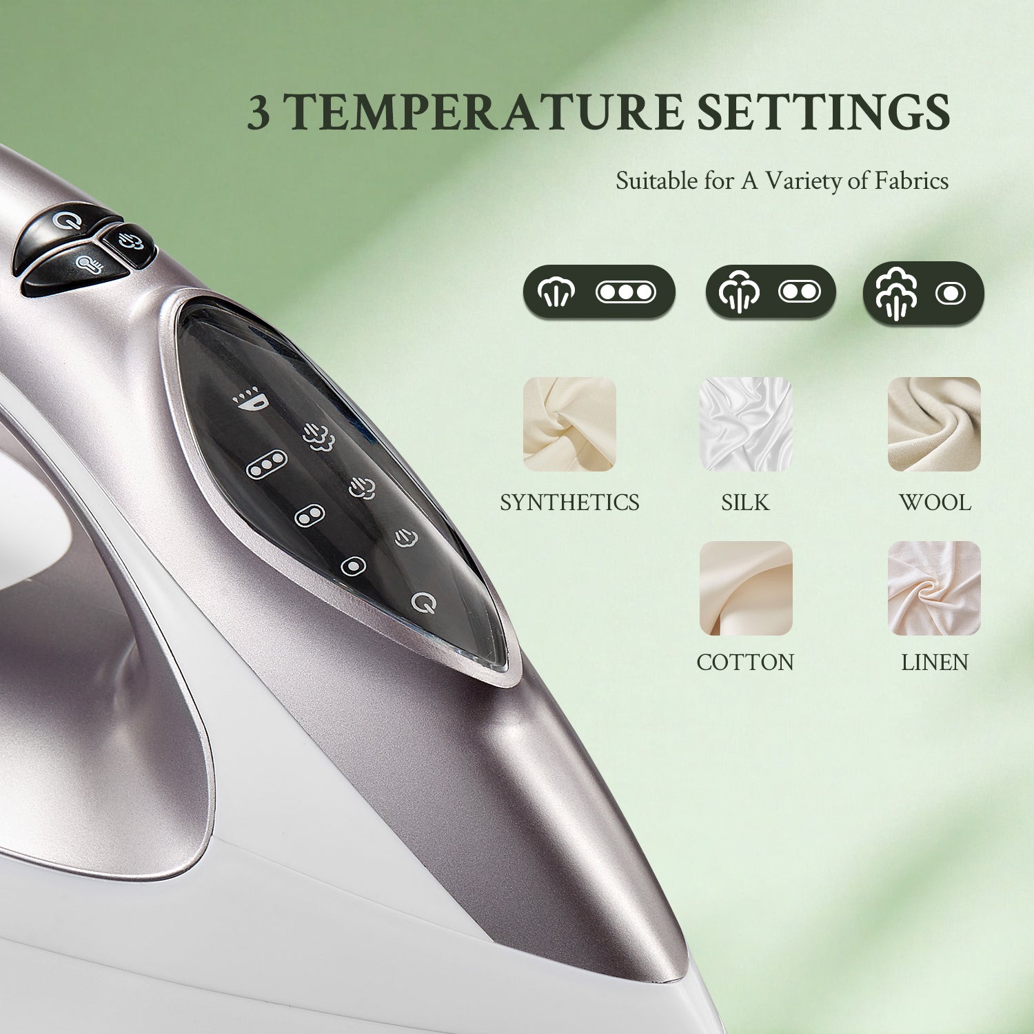 Yabano 2400W Steam Station Iron with 5.5 Bar Pressure, 1.5L Water Tank, Ceramic Soleplate, Anti-Limescale Function, Vertical Steaming, 3 Variable Temperatures, Cord Storage, Light Purple - 220-240V, European Plug, Steam Iron