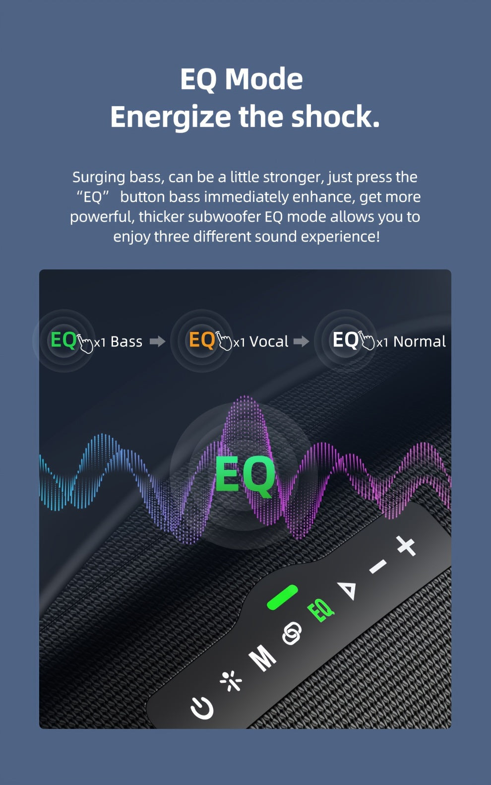 ZEALOT S98 160W Power Amplifier Wireless Speaker, Outdoor Portable, IPX5, with RGB Colorful Lights, 3 Different Sound Experiences with EQ Modes, Up to 8 Hours Playback, Supports Mobile Phones, Tablets, Computers, TV. SD, USB,