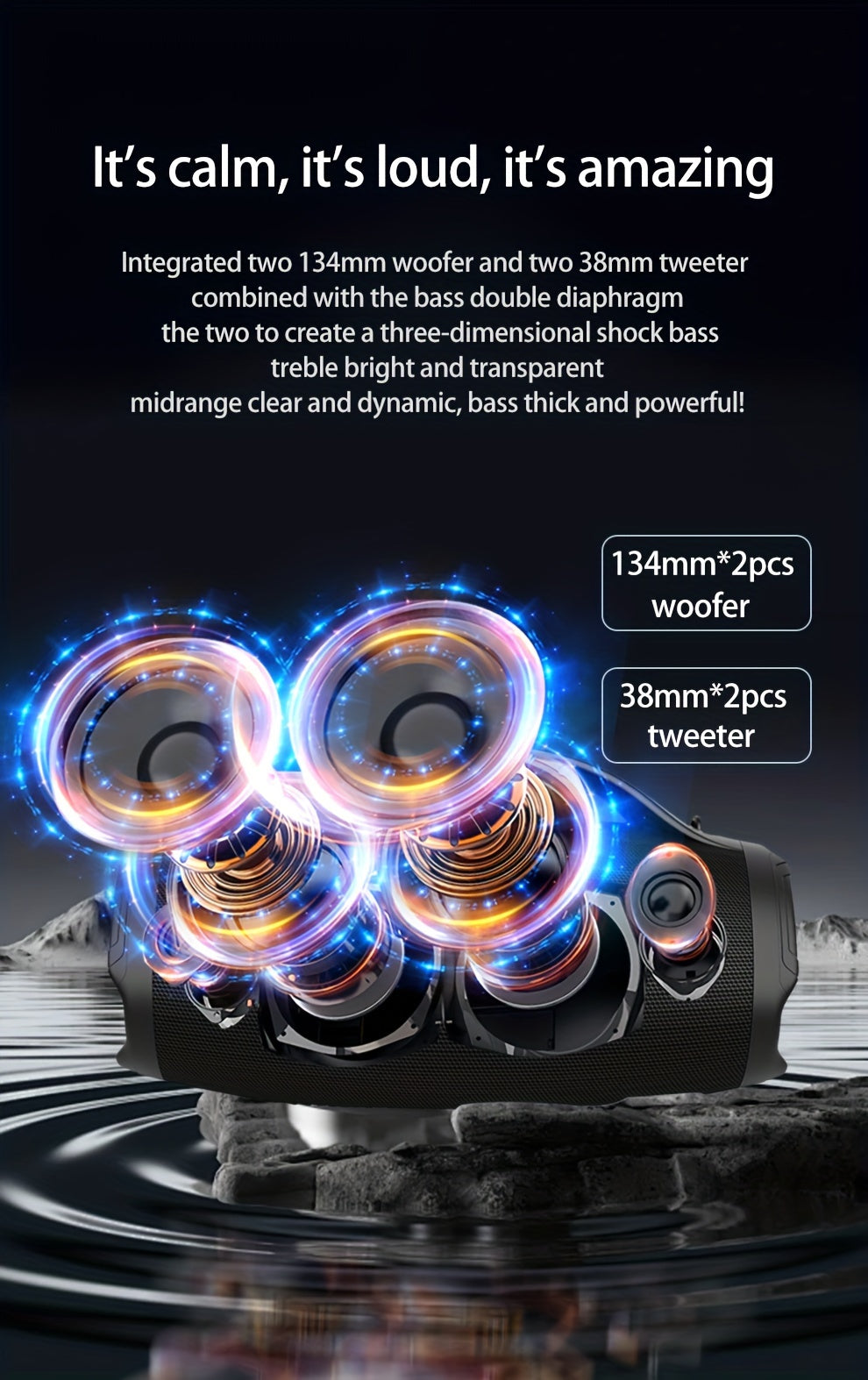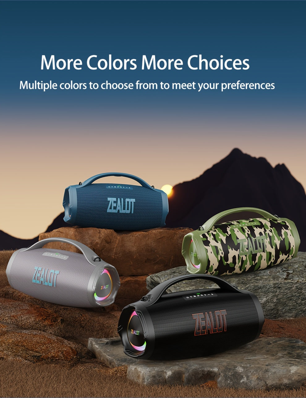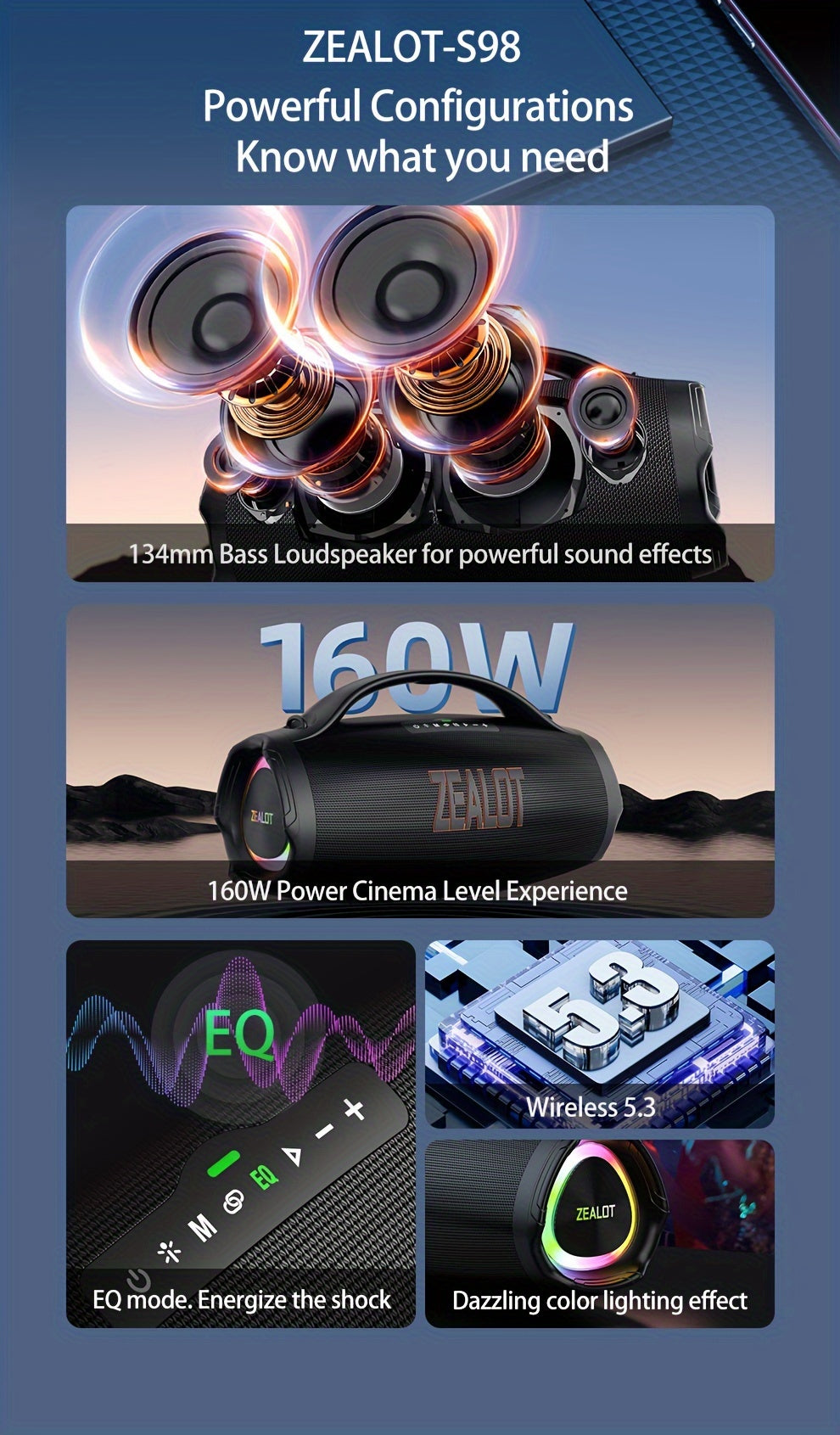 Zealot S98 Portable Wireless Speaker - 160W High-Power, 60H Playtime, IPX5, Fast Charging, Dual Pairing, Shocking Subwoofer, 36000mAh Battery, DSP Technology, Black with Red Accents