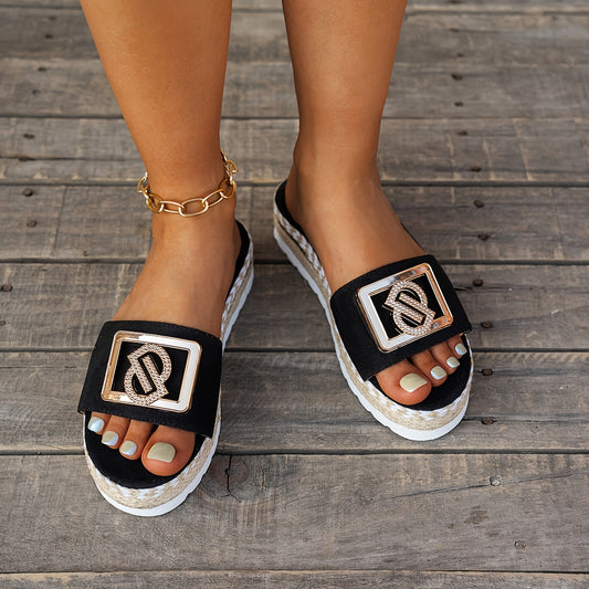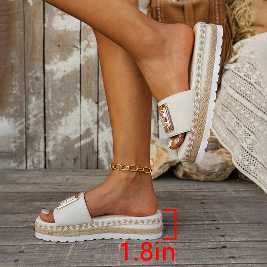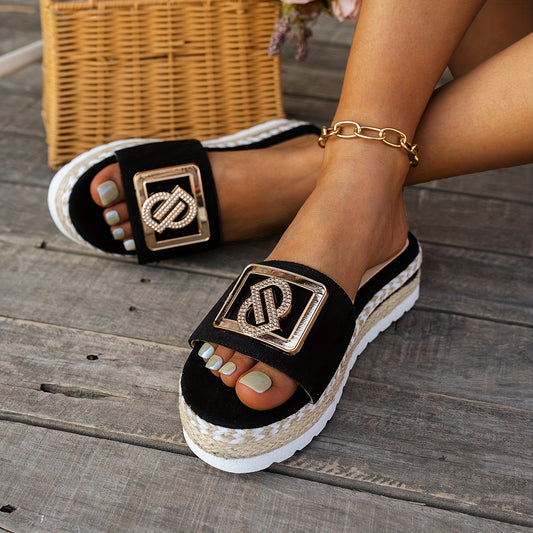 Sandálias de plataforma para mulher para praia com um elegante detalhe em palha.