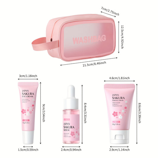 Kit de cuidados de pele LAIKOU Sakura com 3 peças - Kit de viagem com sérum, creme facial e creme de olhos (17ml, 30g - Niacinamida e Vitamina C, Ácido Hialurónico, Todos os tipos de pele, Unissexo, Essenciais de beleza | Estética Rosa | Kit compacto