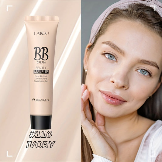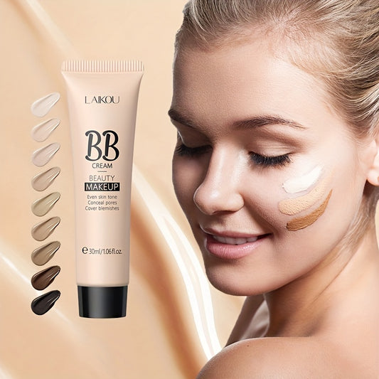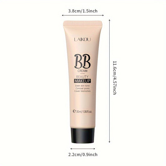 LAIKOU BB Cream à prova de água com cobertura total, tons naturais/marfim/bronzeado, 30ml, base de longa duração, controlo da oleosidade, uniformiza o tom da pele e disfarça os poros.