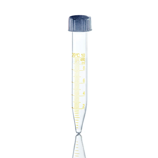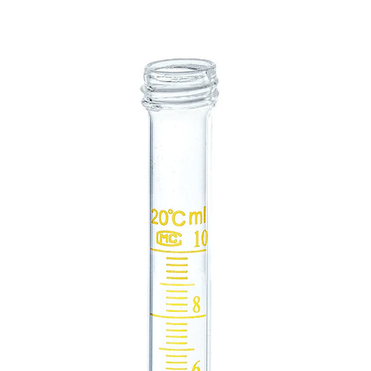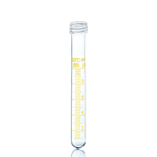 Tubo de ensaio de laboratório graduado em vidro, de fundo plano e redondo, com tampa de rosca, para 10, 15, 20 e 25 ml.