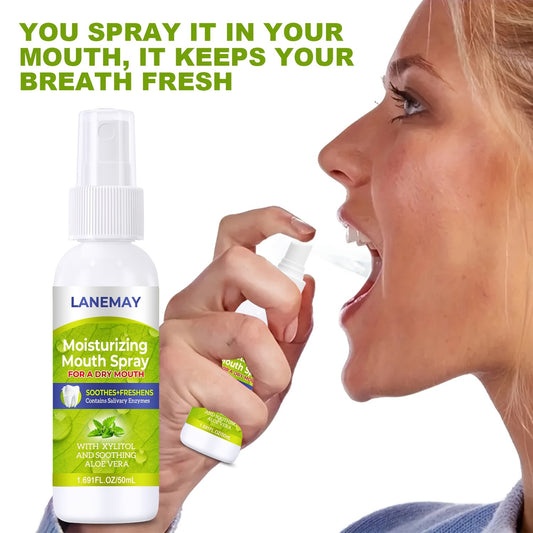 Lanemay Alcohol-Free Dry Mouth Moisturizer with Xylitol and Aloe Vera - Instant Relief Salivary Enzyme Breath Freshener, 1.69fl oz/50ml