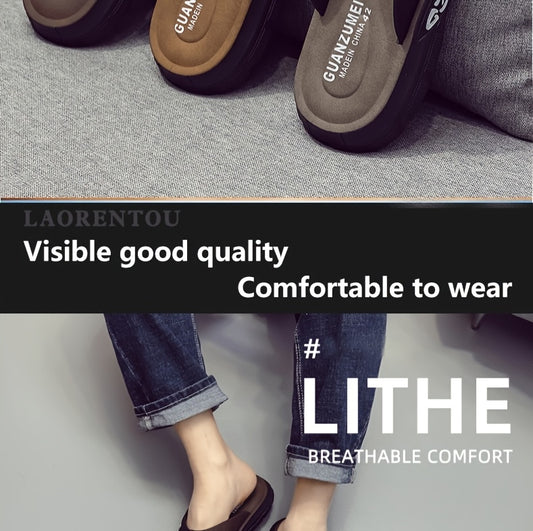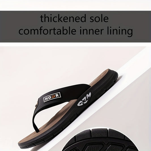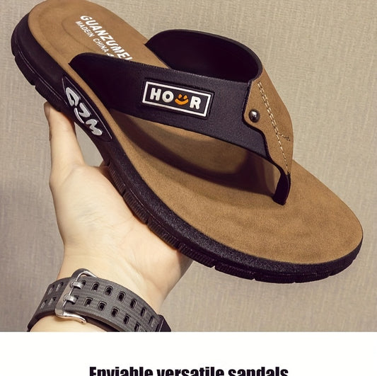 Chinelo de dedo casual de verão para homem - Resistente a odores, antiderrapante, durável, com sola macia e tira ajustável, design castanho e preto para uso diário e ao ar livre, calçado de praia | Chinelo de dedo elegante | Sola em PVC durável, sandália