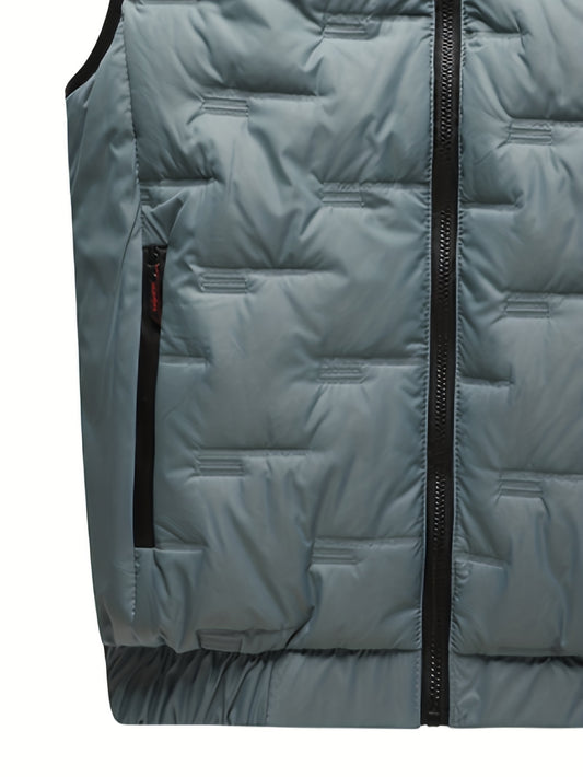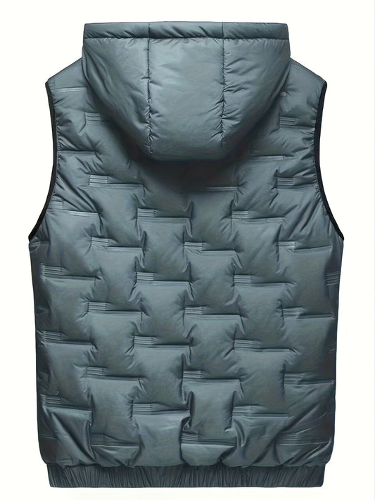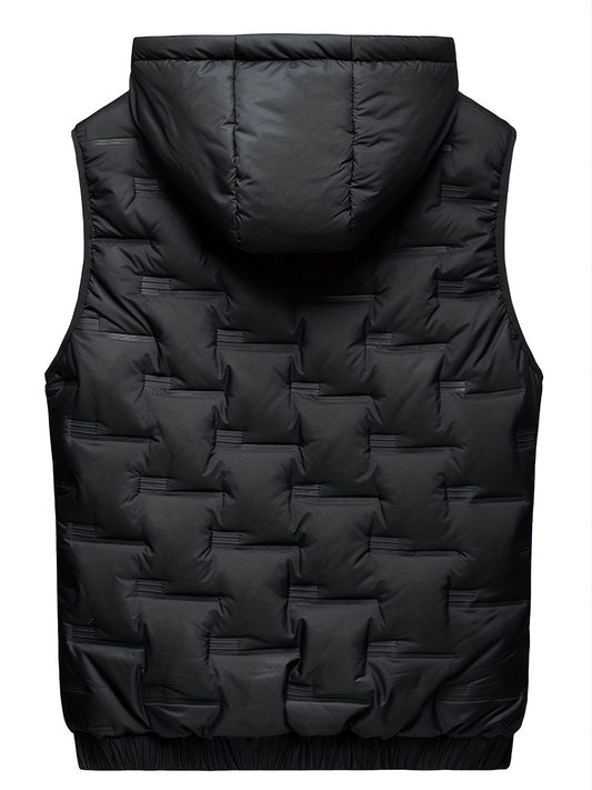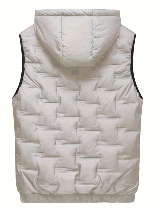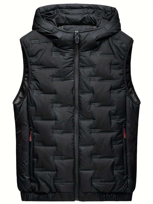 Colete térmico com capuz para homem moderno para o outono/inverno, estilo casaco casual sem mangas.