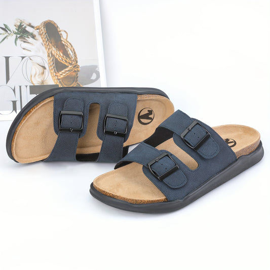 Sandálias de Verão para homem - Topo em microfibra sintética respirável, modelo slip-on com bico redondo, palmilha e sola sintéticas, estilo moderno para férias, uso diário e outdoor.