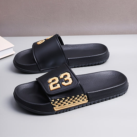 Men'S Summer Fashionable Black PVC Sandals with Number 23 Design - Breathable, Comfortable, Durable, Round Toe, All-Season Casual Footwear, Comfortable Footwear | Stylish Sandals | Durable Footwear