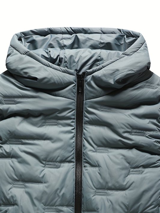 Men's Winter Insulated Full-Zip Jacket with Fleece Lining - Grey Casual Baseball Collar Coat, Zippered Pockets & Polyester Shell for Cold Weather, Outdoor & Everyday Use - Hand Washable (No Dry Clean)