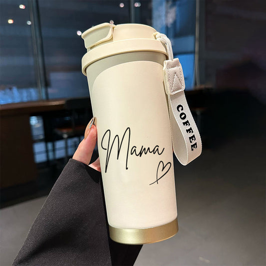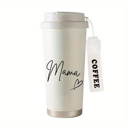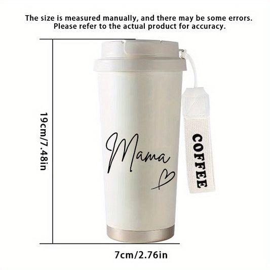 1pc 530ml Insulated Coffee Cup with Straw & Straw Holder - Skull & Heart Design, Leakproof Travel Mug, Detachable Strap, Hot/Cold Thermos for Home, Office, Gifts - Name/Text, Durable Portable Cup for Hot & Cold Drinks