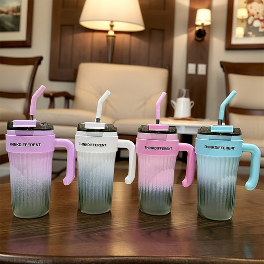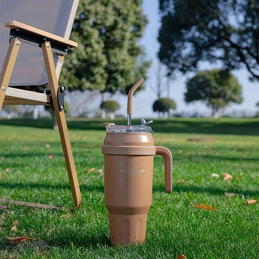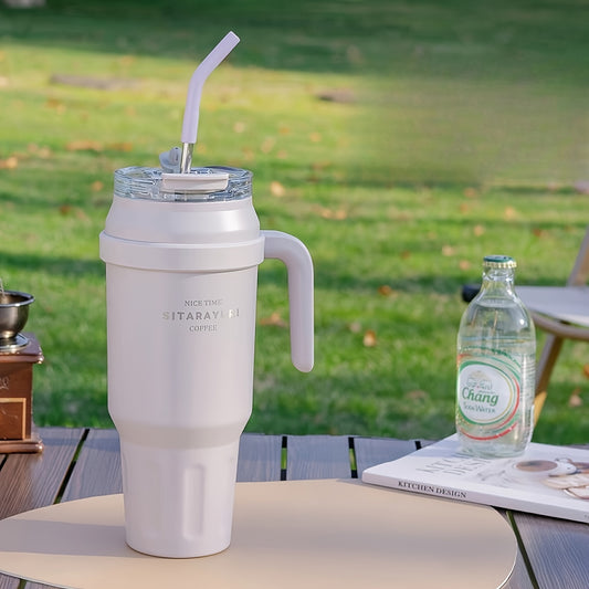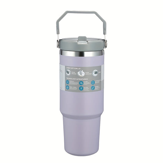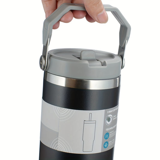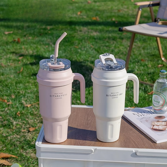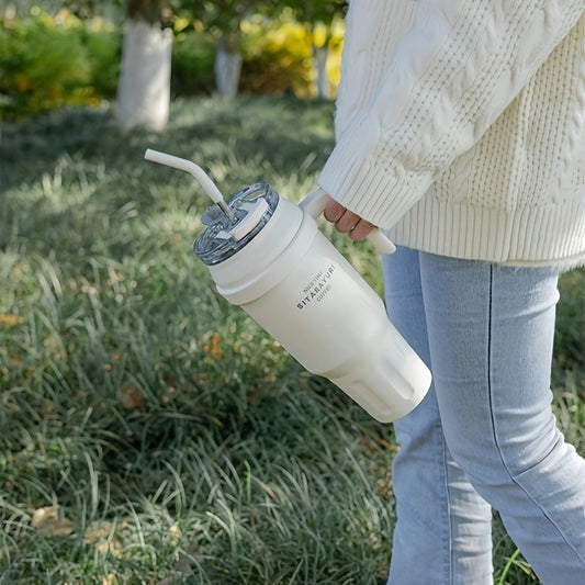 Copo térmico de aço inoxidável de 780ml/28oz com pega, copo de café com isolamento a vácuo de camada dupla, à prova de fugas e quedas, com tampa e palhinha, presente perfeito para amigos, adequado para atividades ao ar livre, campismo e trilhos.