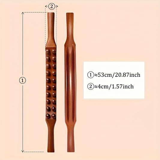 1pc 20-Bead Massage Stick with Wooden Handle - Muscle Shaping & Deep Tissue for Back, Neck, Abdomen, Hands, Legs, Waist - Post-Workout Relaxation Tool for Men & Women, Fascial Knife Stick, Body Massager, Ergonomic Design, Nat