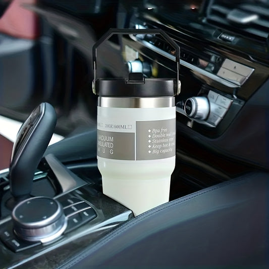 1pc 20oz/30oz Portable Insulated Tumbler With Handle And Straw Lid, Portable Large Capacity Water Bottle, 304 Stainless Steel Car Cup For Outdoor Sports, Travel & Camping, Birthday Gift For Men And Women, Christmas Gift