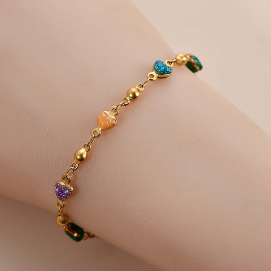 1pc 304 Stainless Steel Golden-Tone Interlocking Link Bracelet - Double-Sided Shiny Heavy Duty Chain, Durable Everyday for Wedding, Anniversary, Gift - Polishable & Tarnish-Resistant (Compatible with Male & Female Style)