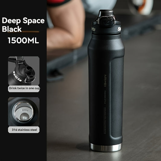NIRMEI 316 Stainless Steel Insulated Sports Water Bottle with Straw - Leak-Proof, Dual-Use for Hot & Cold Beverages, Car Cup Holder Design, Matte Finish, Portable & Durable for Outdoor Activities, Festive Gift for Valentine'S