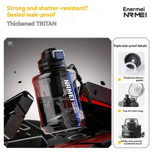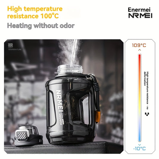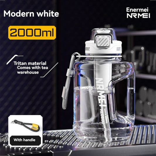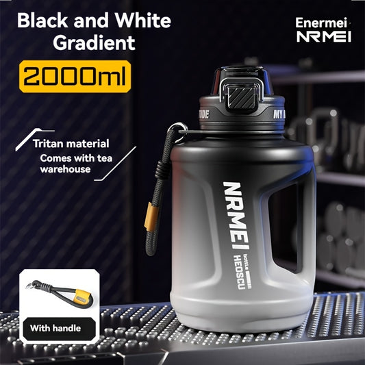 Garrafa de água NRMEI de 1,9 litros com marcador de tempo - Garrafa de hidratação de 1,9 litros livre de BPA, garrafa de água desportiva grande com palhinha e tampa, pega, adequada para campismo e ginásio.