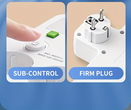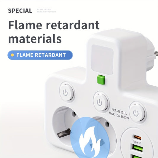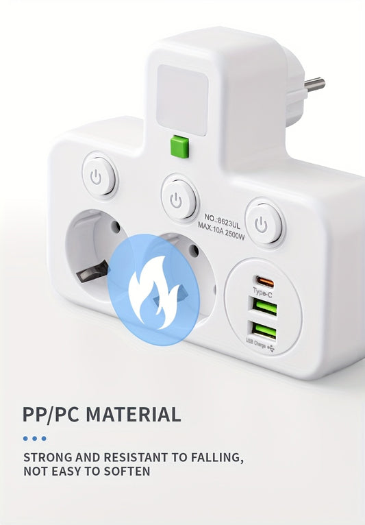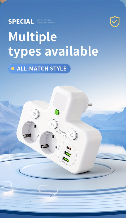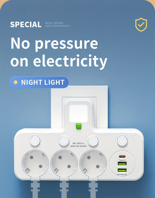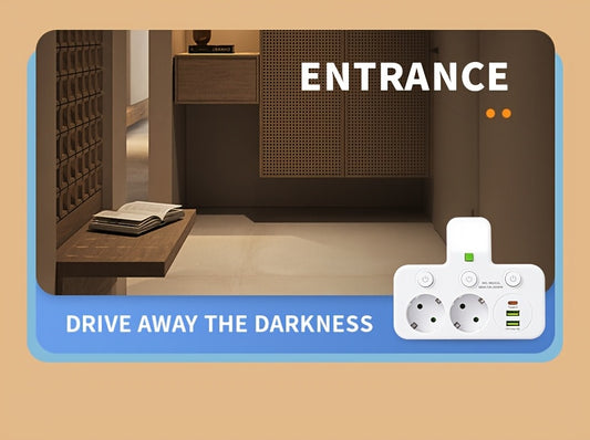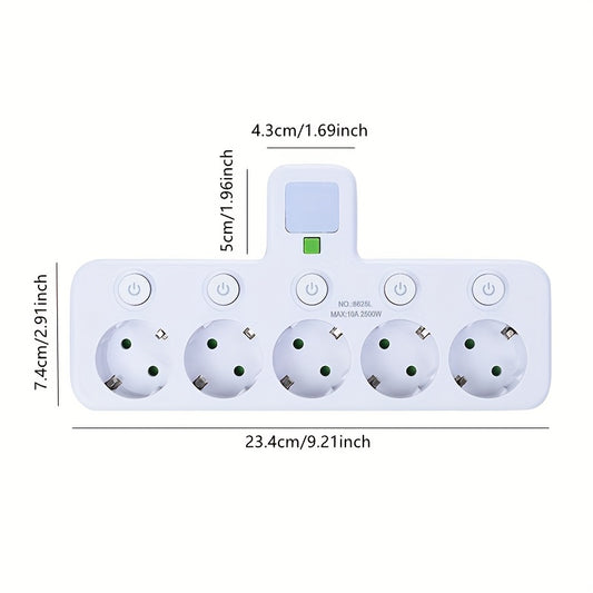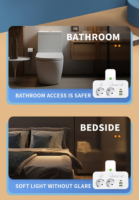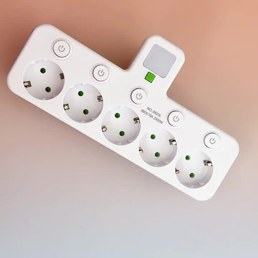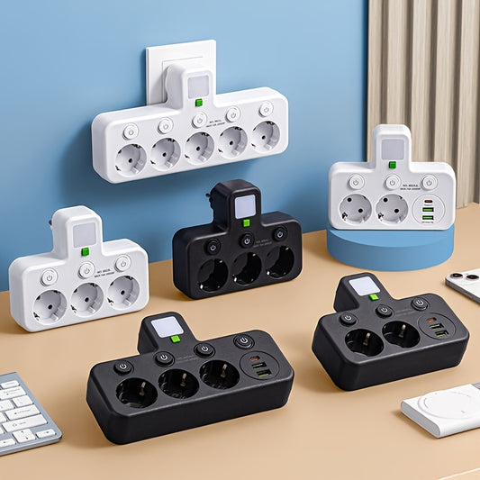 Adaptador de tomada com 5 entradas, tomada de parede multiportas com interruptor independente e pequeno adaptador para luz de presença.