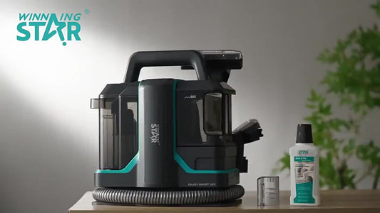 Aspirador de carpetes portátil para limpeza de nódoas, ideal para sofás, camas, carpetes e estofos. Lavador de carpetes com aspirador, limpador profundo e removedor de nódoas. Aspirador de alcatifa com forte sucção e água.
