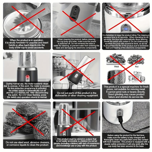Portable Blender, Mini Smoothie and Shake Maker, USB Rechargeable Personal Mixer with 6 Blades for Fresh Juice, 430g Capacity, Stainless Steel Body, Round Shape, Ideal for Kitchen, Home, Travel - Blenders for Kitchen