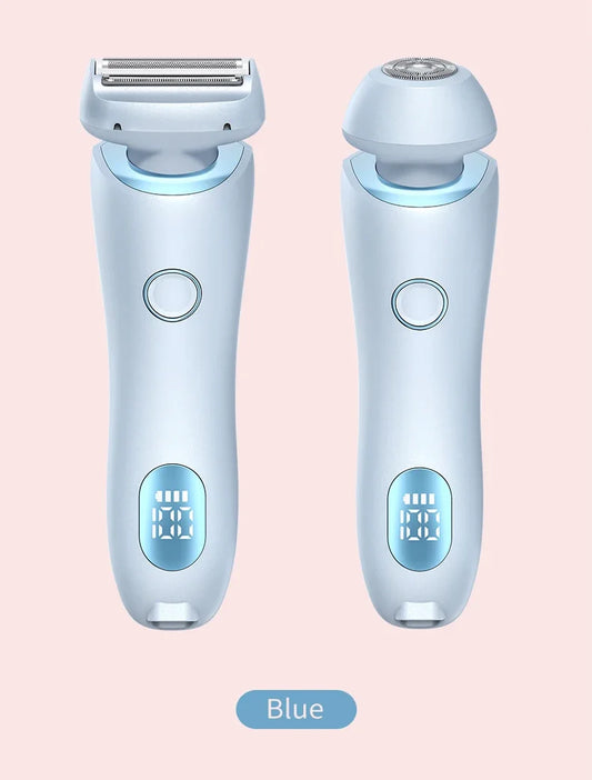 Lâmina de barbear elétrica portátil 2 em 1, à prova de água e indolor, para uso feminino nas zonas íntimas, aparador de pelos, depiladora e máquina de barbear para a zona das virilhas.