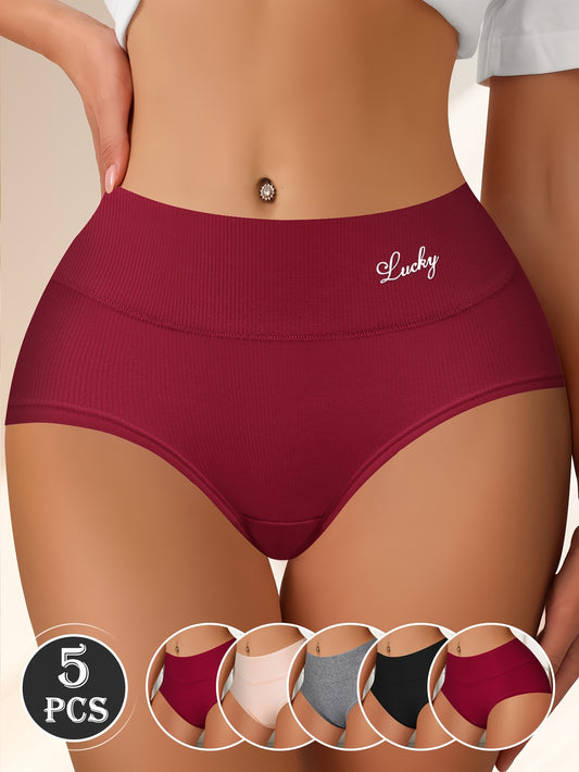 QUASTI Women's Mid-Rise Panties 5-Pack - Soft and Breathable Light Beige Underwear, Comfortable Solid Color -Leakage Panties for All Seasons, Everyday Underwear, Allseason Wear, Classic Briefs, Minimalist Style, Smooth Textur