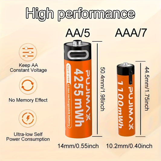 Pacote combinado de pilhas de lítio recarregáveis PUJIMAX AA4255mWh + AAA1100mAh, 1,5V, 2+2/4+4/8+8 unidades, compatíveis com 90% dos dispositivos eletrónicos, duráveis e de longa duração, com baixo consumo de energia.