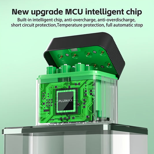 PUJIMAX 8-Pack High-Capacity 4255mWh & 1100mWh AA+AAA Lithium with 8-Slot Fast Charger - Long-Lasting Power, Over-Voltage/Over-Current/Over-Heat/Over-Temperature/Over-Voltage Protection, Compatible with Smartphones, Laptops,
