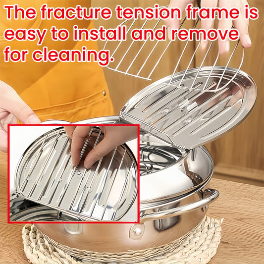 1pc Deep Fryer, Frying Pan With Lid, Stainless Steel Fryer With Temperature Control And Oil Drop Filter Rack, Suitable For Kitchen French Fries, Chicken And More, Gas Stove Electromagnetic Stove Universal, Kitchen Cookware