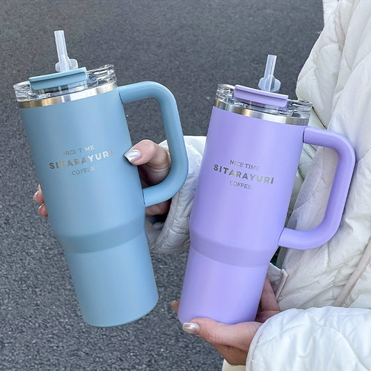 Copo térmico em aço inoxidável de 900ml com palhinha e pega, à prova de fugas, livre de BPA, ideal para campismo e desportos ao ar livre, multicolorido.
