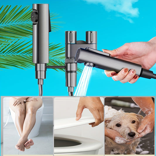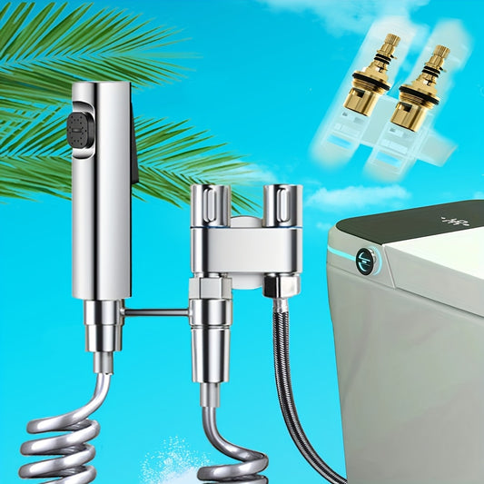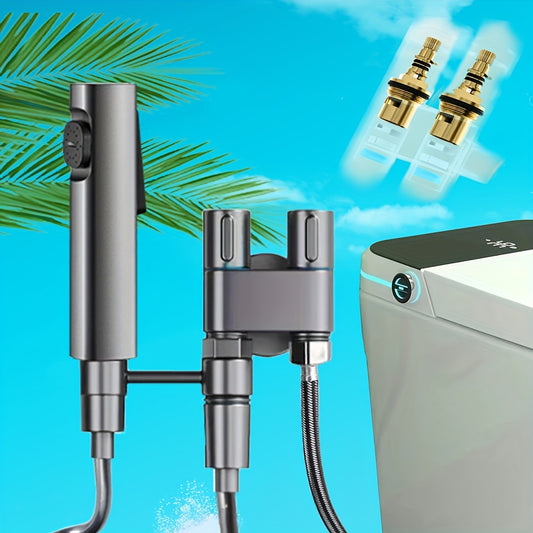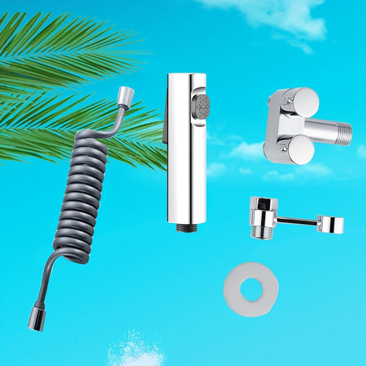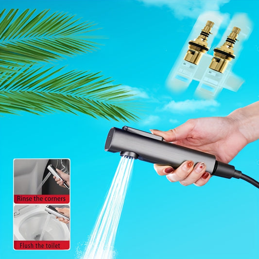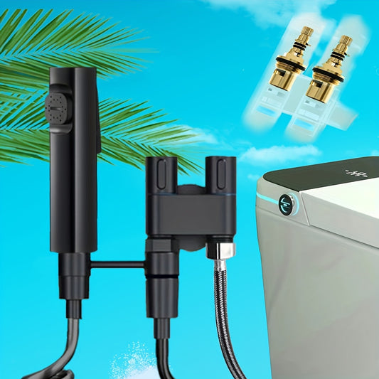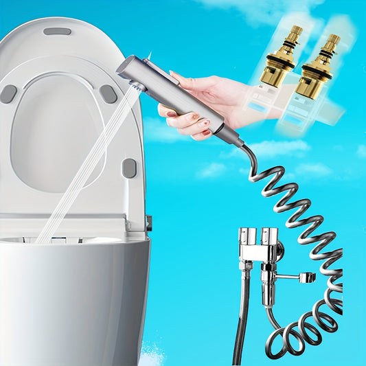 Pistola de pulverização pressurizada quadrada e redonda com suporte plano em aço inoxidável, com válvula de saída de água dupla para utilização na sanita - Jato potente