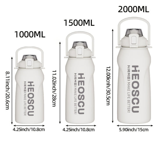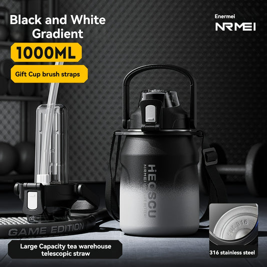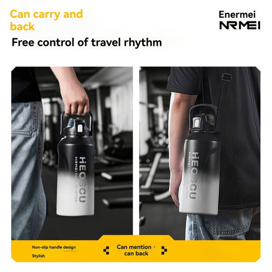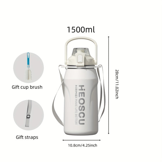 Garrafa térmica em aço inoxidável, mantém a temperatura quente ou fria durante 24 horas, com palhinha e pega/correia, caneca térmica de viagem com parede dupla, livre de BPA.