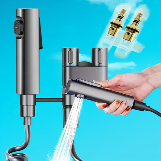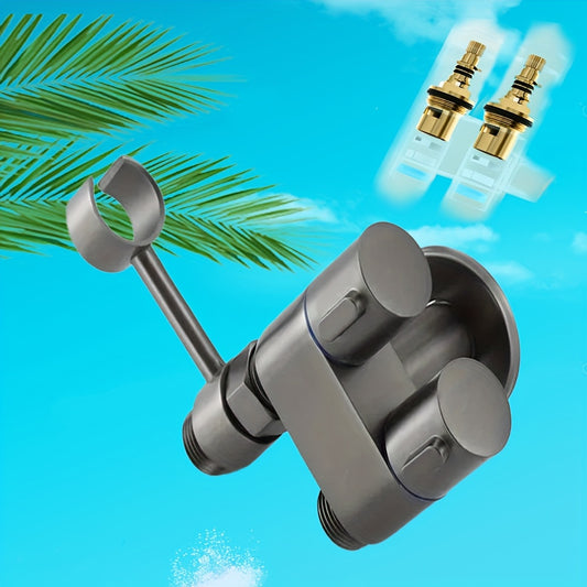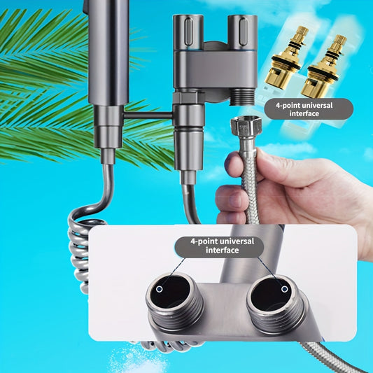 Stainless Steel Heavy-Duty Wall-Mounted Shower System with Adjustable Vertical Spray Gun - Dual-Outlet Angle Valve (G1/2 Male Thread) for Bathroom,, Car Wash - ABS Hose Compatible, Polished Chrome & Valve Core