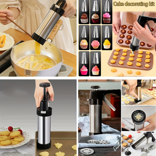 Stainless Steel Cookie Press Kit with Various Nozzles - Perfect for Valentine'S Day, Easter, and More - DIY Baking Tools for Making Dessert Decorations, Kitchen Accessory | Decorative Cookie Press | Durable Construction, Cook