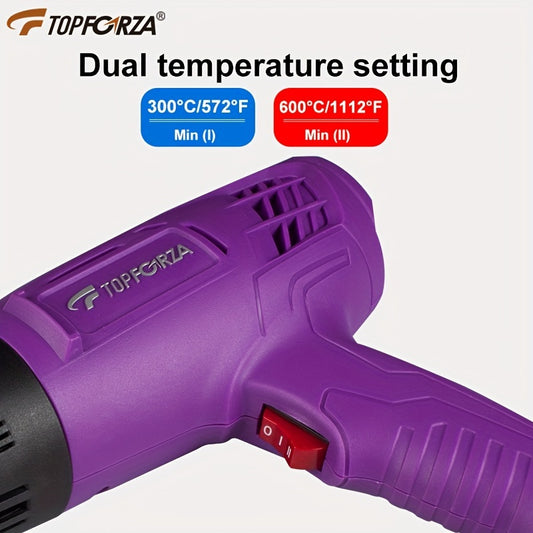 TOPFORZA Industrial Heat Gun with Dual-Speed & Temperature Control, Overheat Protection - Heavy-Duty Hot Air Blower for Automotive, Film, Packaging, Electronics - Includes Nozzles - Compatible with European Plug (220-240V) -