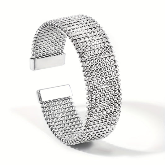 Nova bracelete moderna em aço inoxidável entrançado com um toque dourado. Acessório elegante num tom dourado versátil.