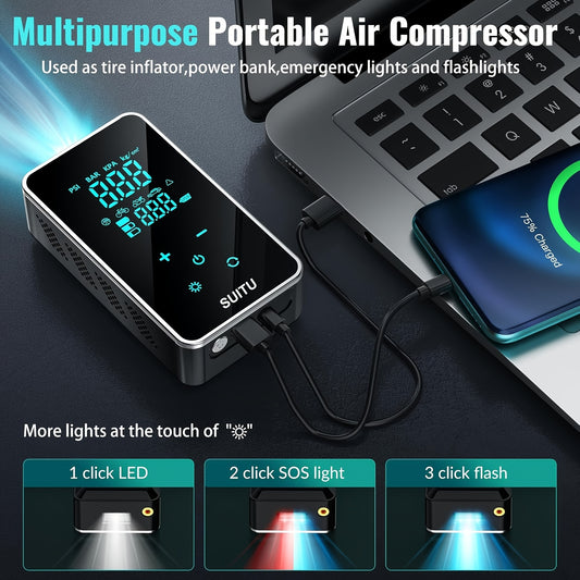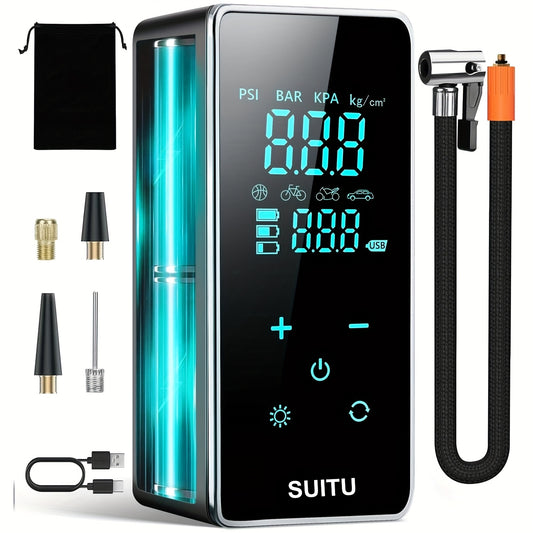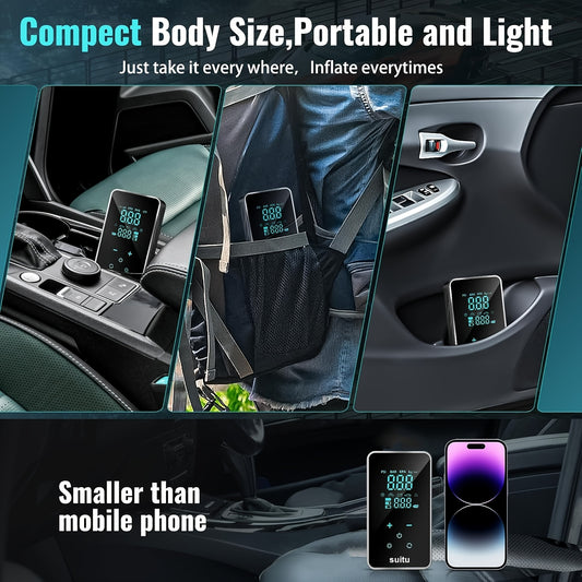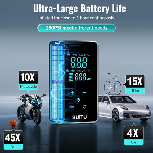 Tyre Inflators 150PSI Portable Cordless Air Compressors, Tire Air Compressors & Inflators, Car Tire Air Pump, 4 Inflation Modes, 3 Nozzle Adaptors, Accurate Pressure LCD Display with LED Light, Air Compressor for Car, Motorcy