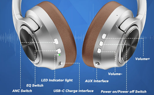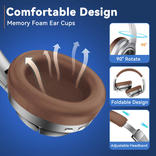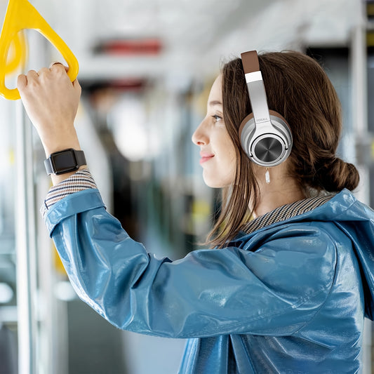 Auscultadores U35 híbridos com cancelamento de ruído ativo, leves e sem fios, com múltiplos modos de equalização, 60 horas de reprodução, controlo de volume, graves 3D e design dobrável. Ideais para viagens, casa, escritório e jogos.