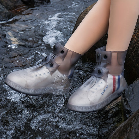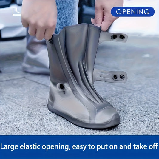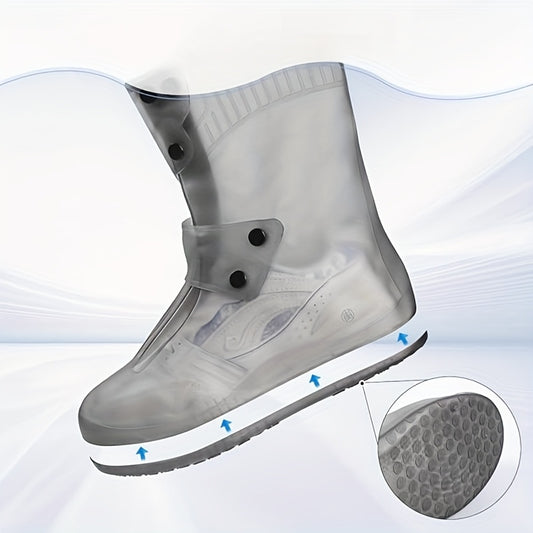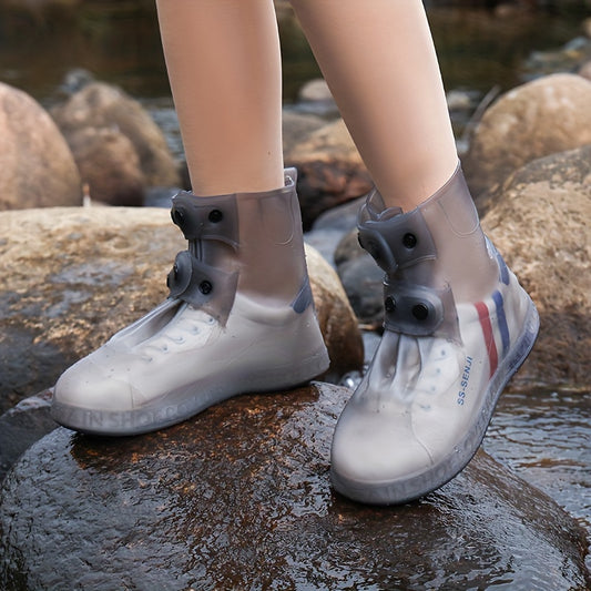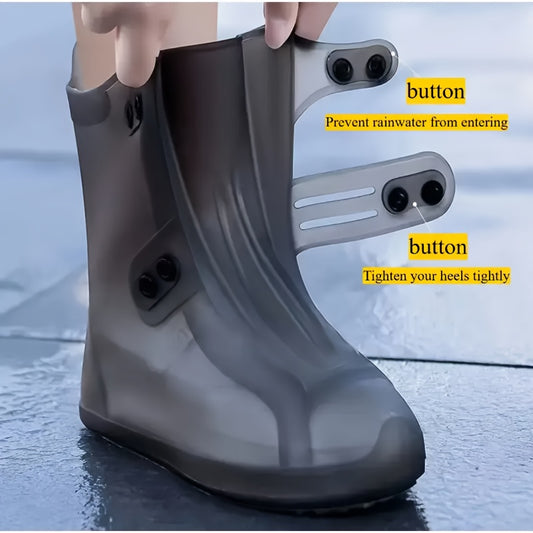 Waterproof Silicone Shoe Covers - Anti-Slip Reusable Foldable Boot Protectors with Double Button Design & Thick Sole for Rainy Snowy Weather, Unisex for Men & Women, Rain Shoe Cover, Rainy Day Essentials, Snow Protection Foot