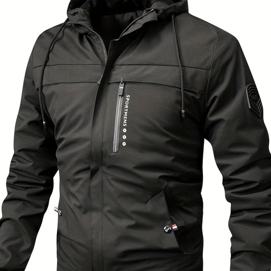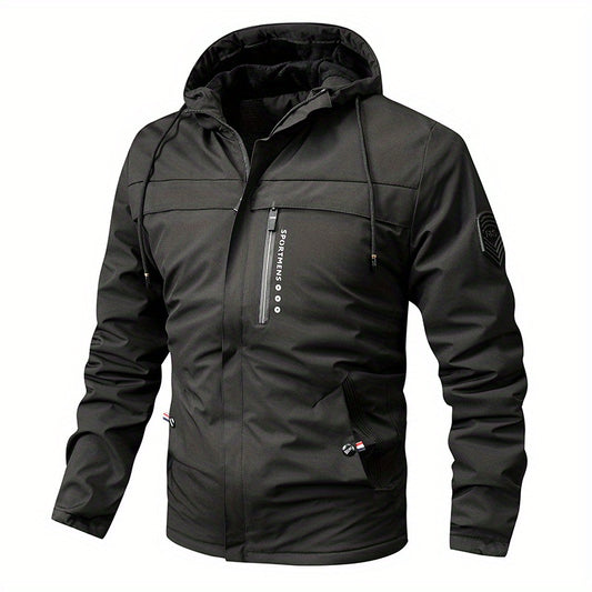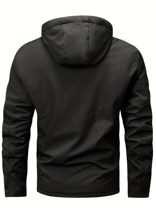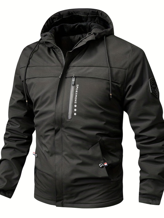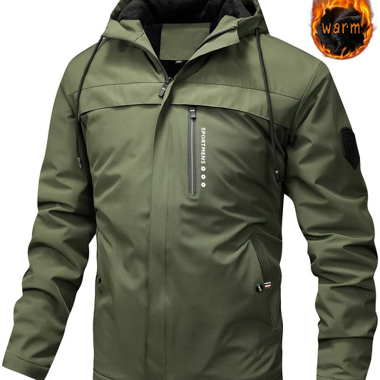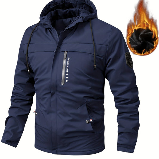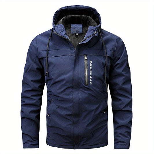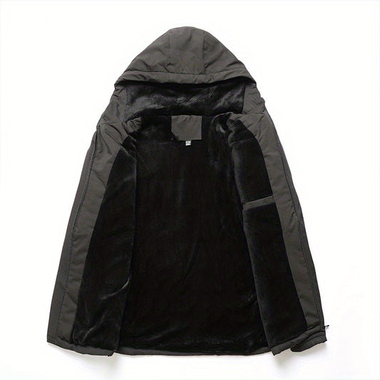 Casaco com capuz em polar quente, casaco casual de inverno para homem para atividades ao ar livre.