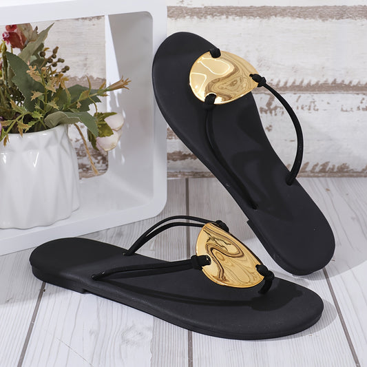 Women'S Black & Golden Flip-Flops - Stylish Summer Beach Slides with Crisscross Straps, Synthetic Cover Upper & Rubber Sole, Comfortable Flat Heel for Casual Wear, Beach Shoes, Indoor Footwear, Crisscross Strap Design, Durabl