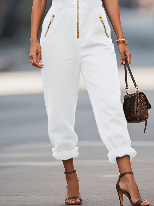 Women'S Casual Solid Color Zipper Belt Jumpsuit - Short Sleeve, Wide Leg, Button-Up Front, Loose Fit, Lightweight Polyester, Perfect for Spring/Summer/Fall, Casual Attire|Casual Style|Zipper Detail, Curvy Mono For Woman, Comp