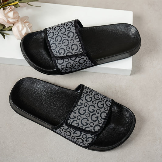 Women's White/Golden Greek Key & Letter Print Slip-On Mules - PU Cover Upper, Cushioned Insole & Arch - All-Season Casual Sandals for Beach, Weddings & Casual Attire, Comfortable Sleepers For Womens, Woman Slippers For Women,