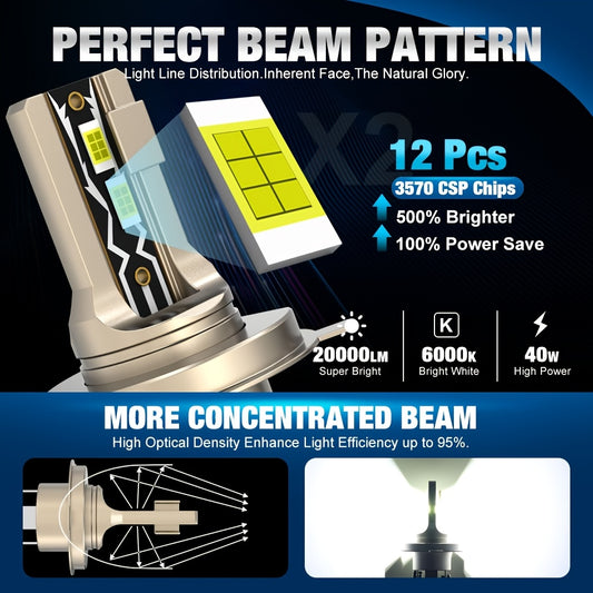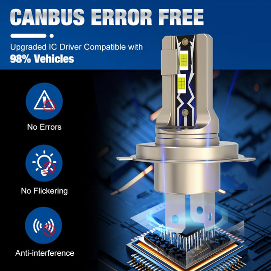 Xstorm 2pcs H4 9003 LED Car Headlight Bulbs, 40W 20000LM 6000K Cool White 500% Brightness H4/9003/HB2 LED Canbus High/Low Beam Moto Head light Auto Motorcycle Lamp 12V Plug And Play, Without Battery