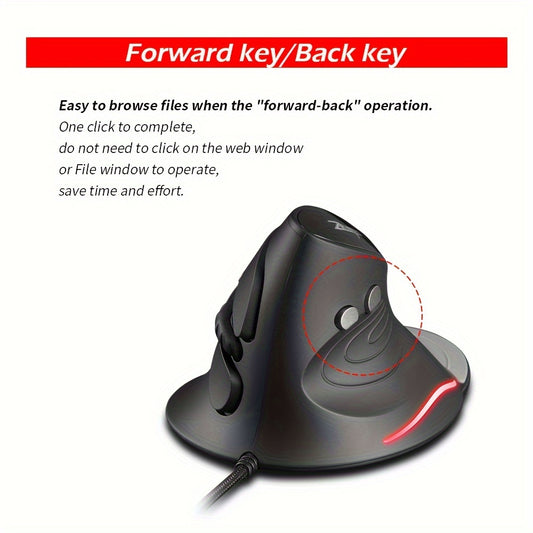 Rato vertical com fios, design ergonómico, 6 botões, compatível com PC/Mac/portátil, rato vertical USB com fios, rato para jogos e e-sports, ZELOTES T-30