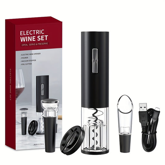 USB Rechargeable Wine Bottle Opener Set | Fully Automatic Spiral Corkscrew + Foil Cutter + Vacuum Stopper + Pourer | Quick Cork Removal Without Jamming | Recommended for Home Parties | Compatible with Wine/Champagne/Soda | Ki