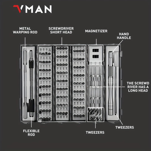 Conjunto de 128 chaves de fendas de precisão, kit de chaves magnéticas com haste flexível, kit de ferramentas magnéticas profissionais para reparação de computadores, portáteis, câmaras e consolas de jogos. Ótima opção para oferecer.
