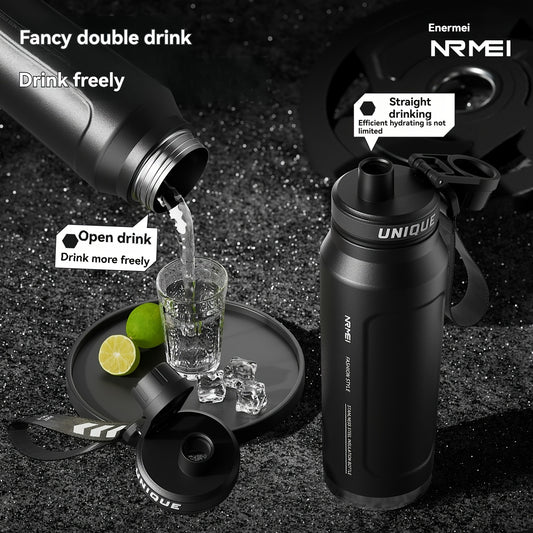 1 stainless steel water bottle with carrying strap, 316 stainless steel, suitable for outdoor and camping